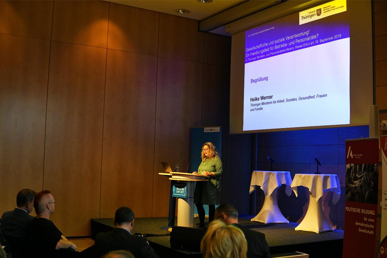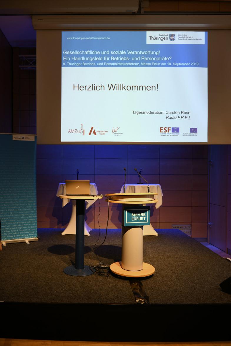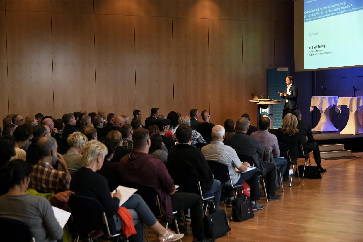 Die 9. Thüringer Betriebs- und Personalrätekonferenz fand am 18. September 2019 unter dem Titel Gesellschaftliche und soziale Verantwortung! Ein Handlungsfeld für Betriebs- und Personalräte? in der Erfurter Messe statt.